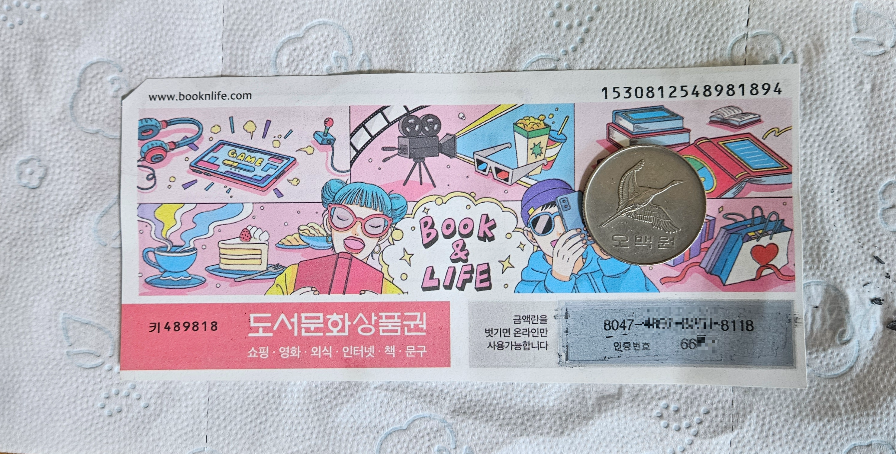 4. 지류상품권 준비 및 금액란을 동전으로 긁어 PIN번호와 인증번호 확인