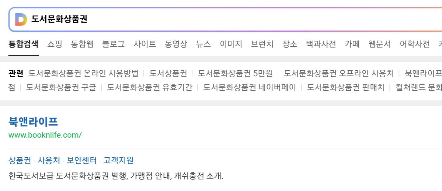 1. 검색창에 '북앤라이프' or '도서문화상품권' 검색