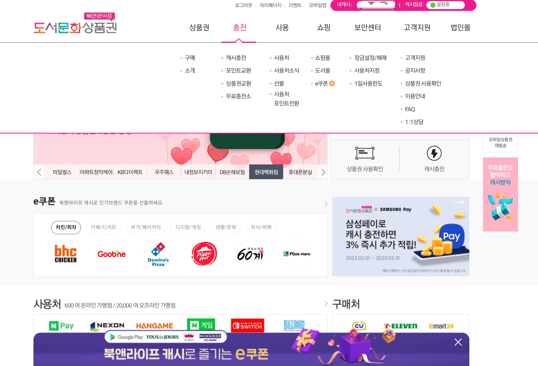 사고 싶은 책이 많아서 도서문화상품권을 캐시충전 했습니다.